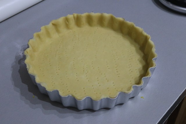 After chilling in the fridge for… well definitely 20 minutes but it may have been longer, I rolled it out and lined the tin.