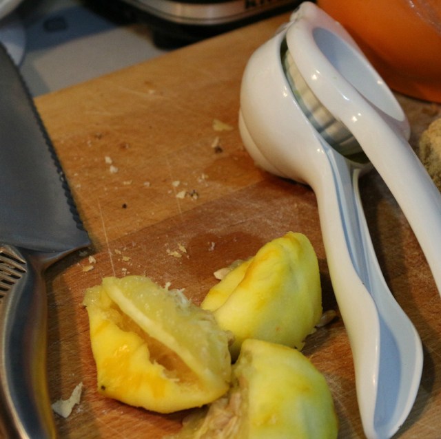 So I got the treacle all runny, added the breadcrumbs, zest of lemon, then used my badass lemon juicer to juice my lemons: