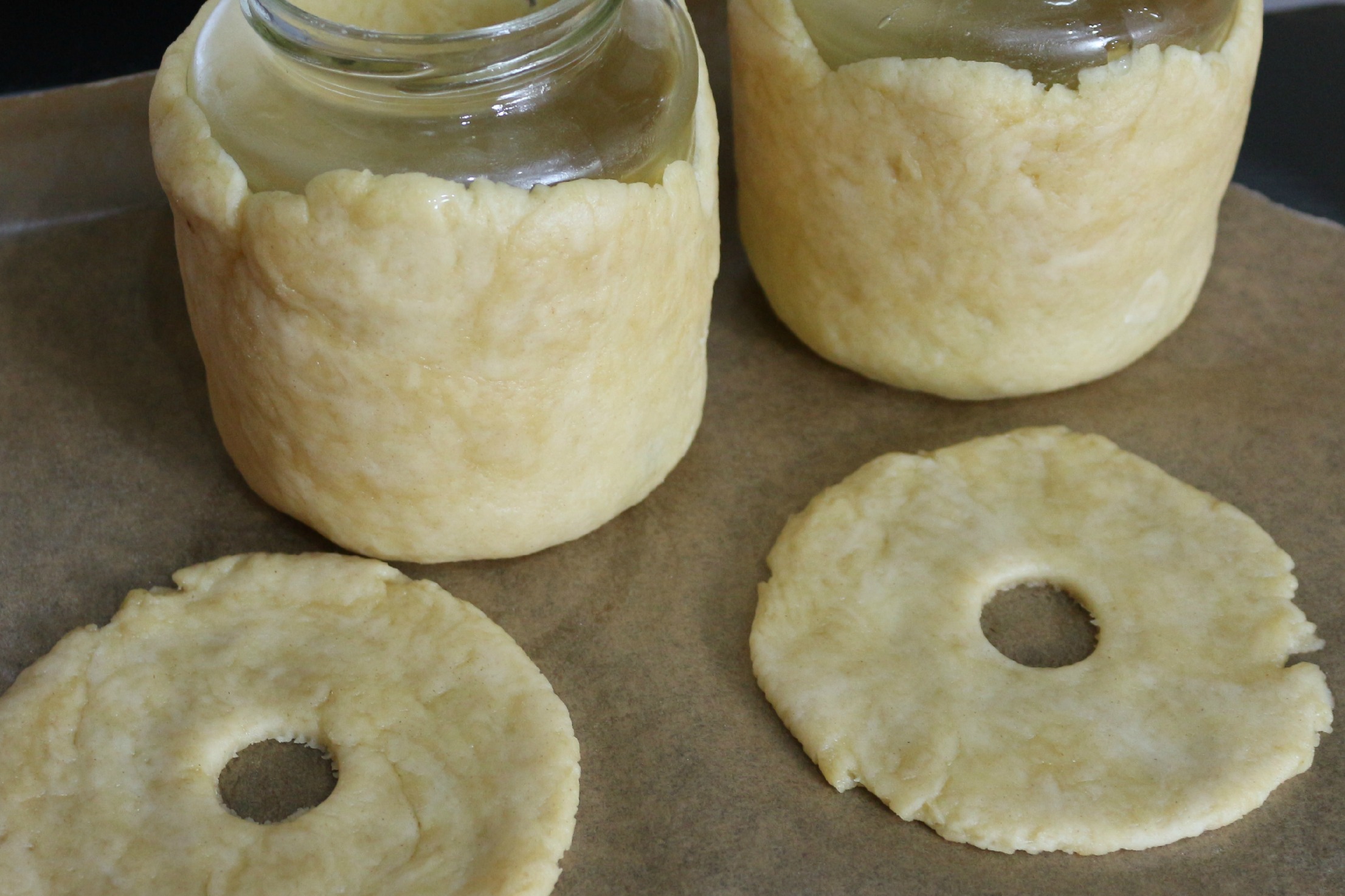 I didn’t have any wooden pie dollies (a cylindrical wooden object with a handle, used to form the pie around), so the suggestion from the book, from Mary Berry herself, is to use jam jars of similar dimensions (13cm diameter, 7.25cm high)…… I’m not sure what jam Mary has… but that’s a pretty large jam jar! The nearest thing I had was more like 10-11cm diameter, and a golden syrup jar.