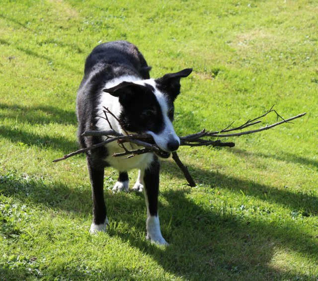 Note: she doesn’t give the sticks back. She collects them in her mouth until she can no longer fit any more in.