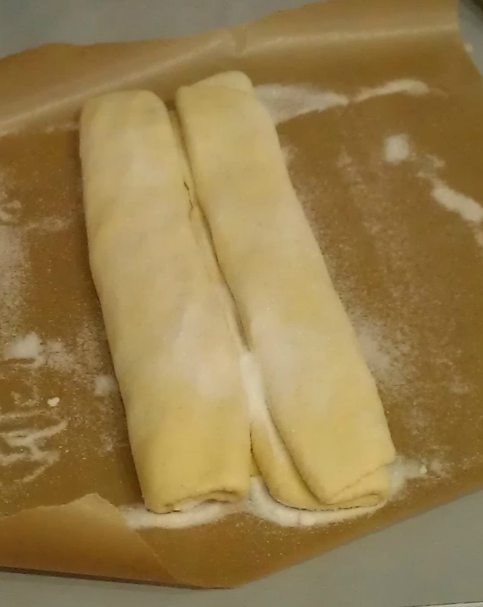 Fold again as described above for the layers, then roll out into a long rectangle.