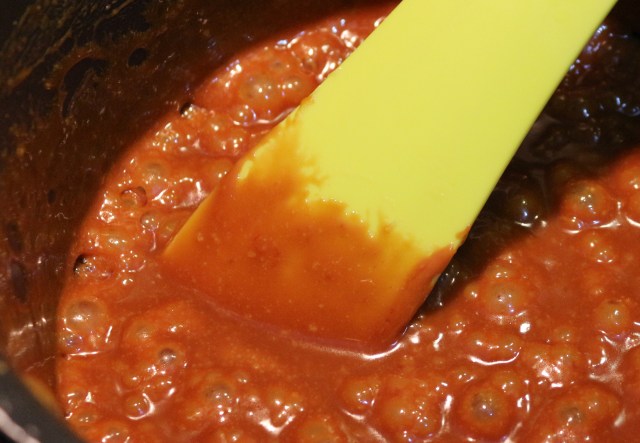 Using a silicone spatula, drag the dissolved sugar towards the middle to help it dissolve more evenly (or swirl it!)