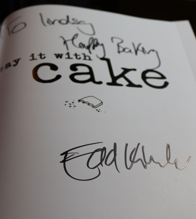 I knew the recipe from the demo, but I also was lucky enough to buy an advance copy of his new book, Say it with Cake, and get it signed by the man himself: