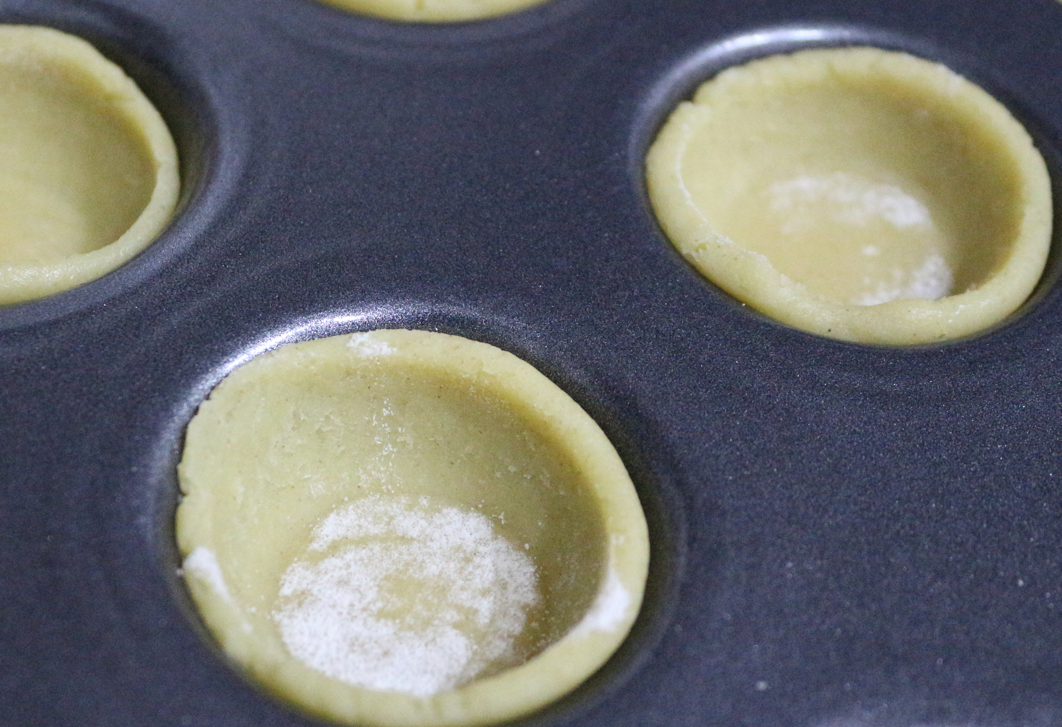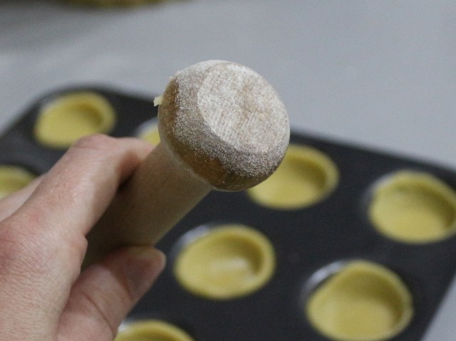 Because I have the mini muffin tin and tart shaper, next I just took a small blob of pastry…………….