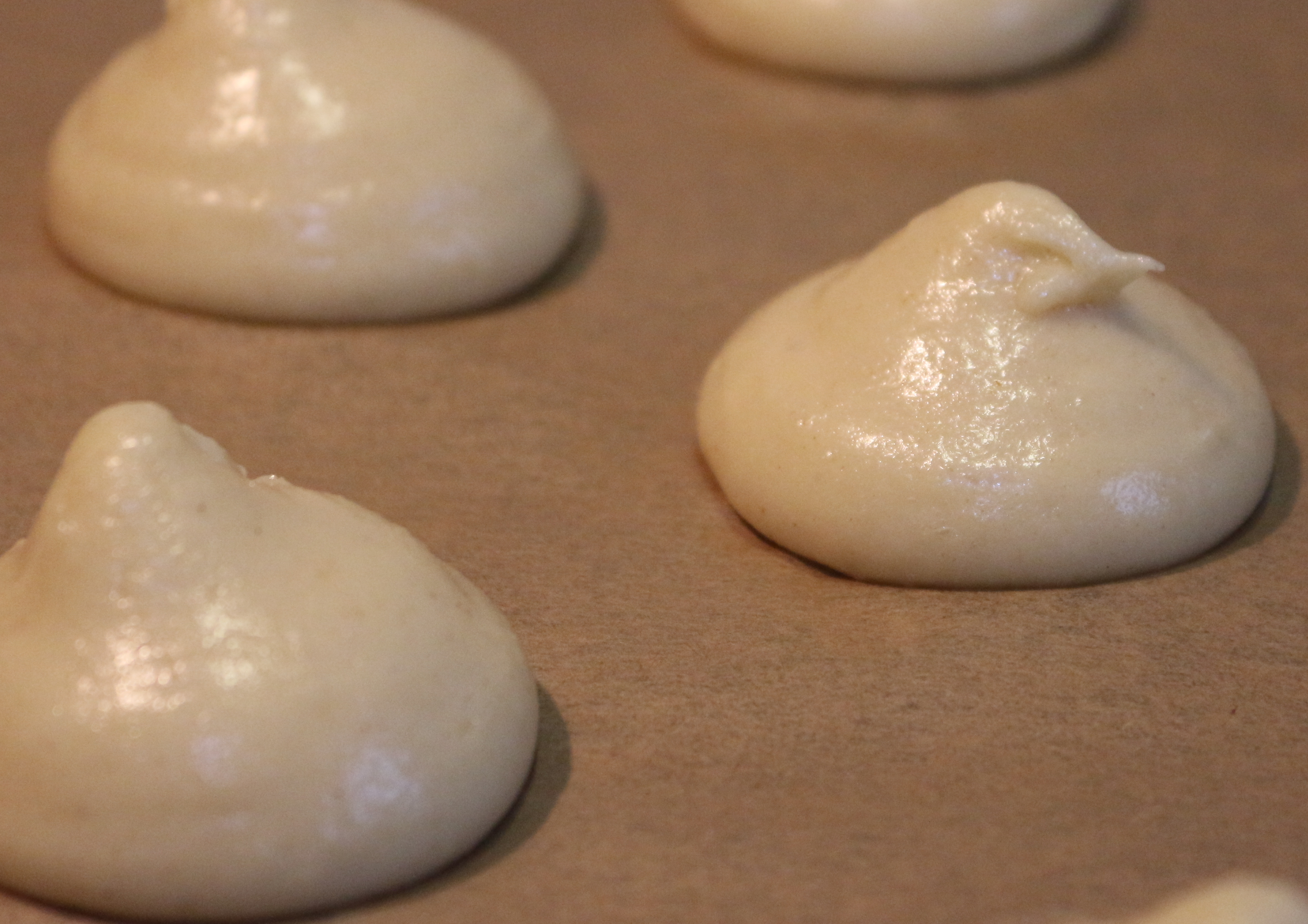 Spoon the dough into a piping bag fitted with a 2cm plain nozzle, and pipe mounds, onto a lined baking sheet, approx. 4cm across and 3 cm high.