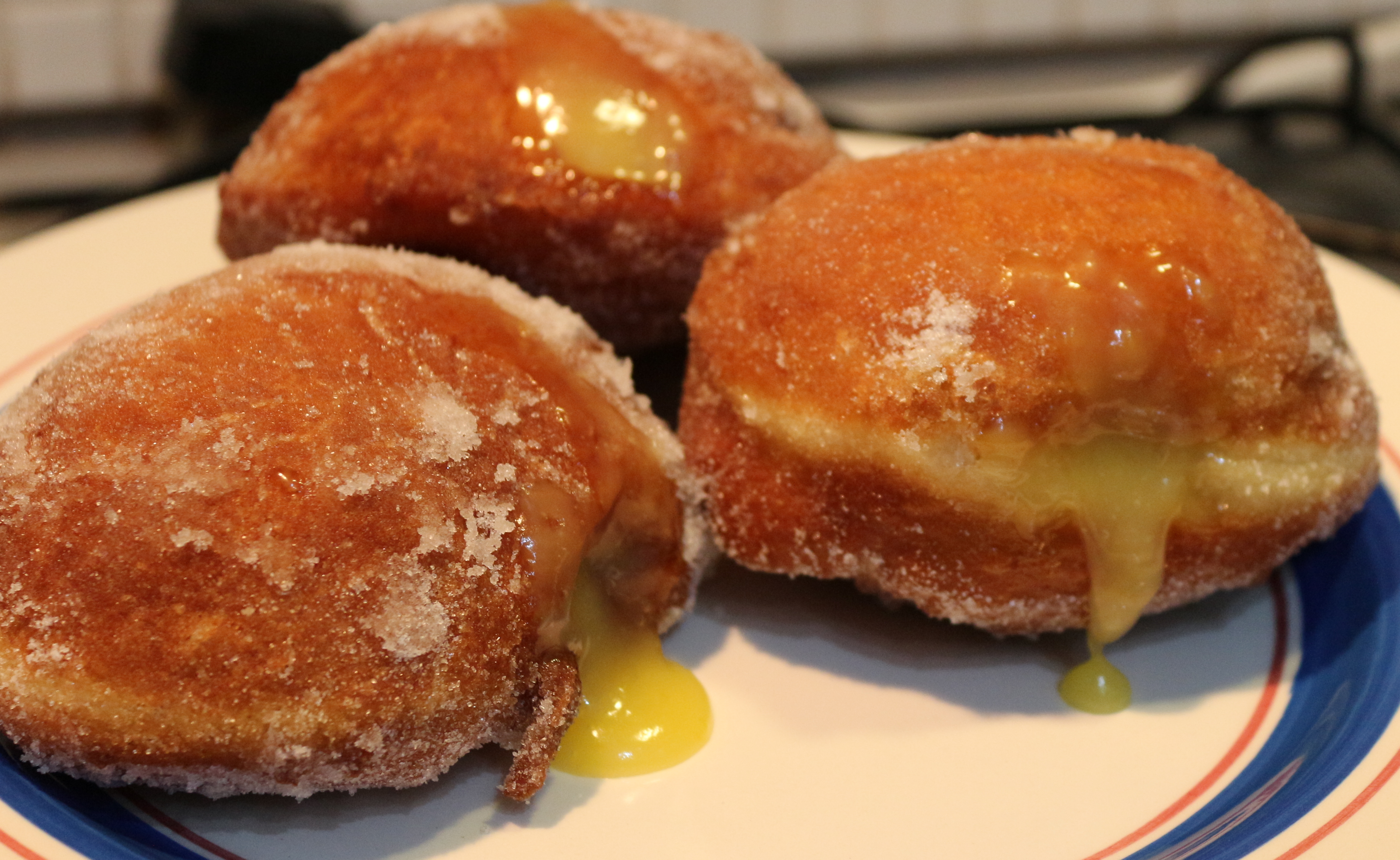 ….then I also made some more doughnuts (using the semi-broken fryer :() and used a piping bag to fill them with lemony loveliness!
