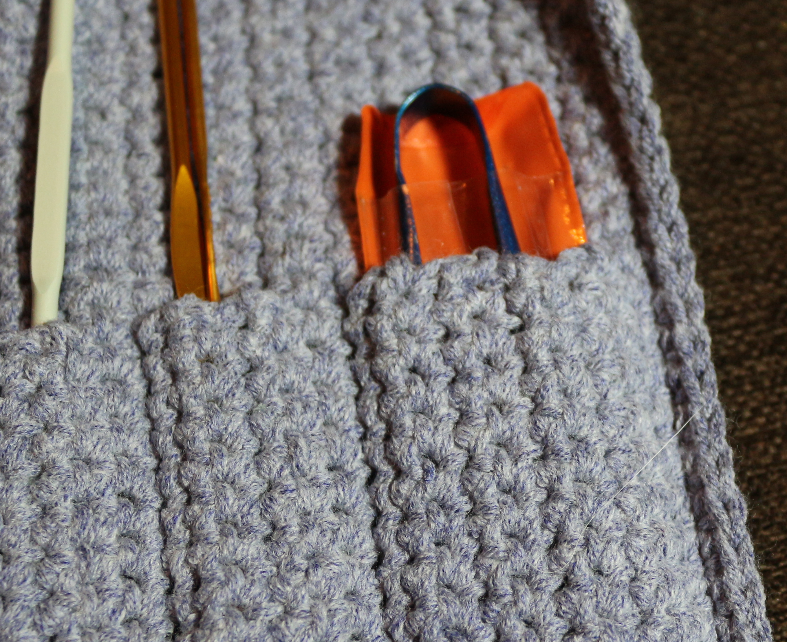The pockets were made by using double crochet first into the back loop to the end, then dc into the first loop to create a double row of stitches which then were worked using double crochet to form the pocket, then tied back together by using dc into both of them together.