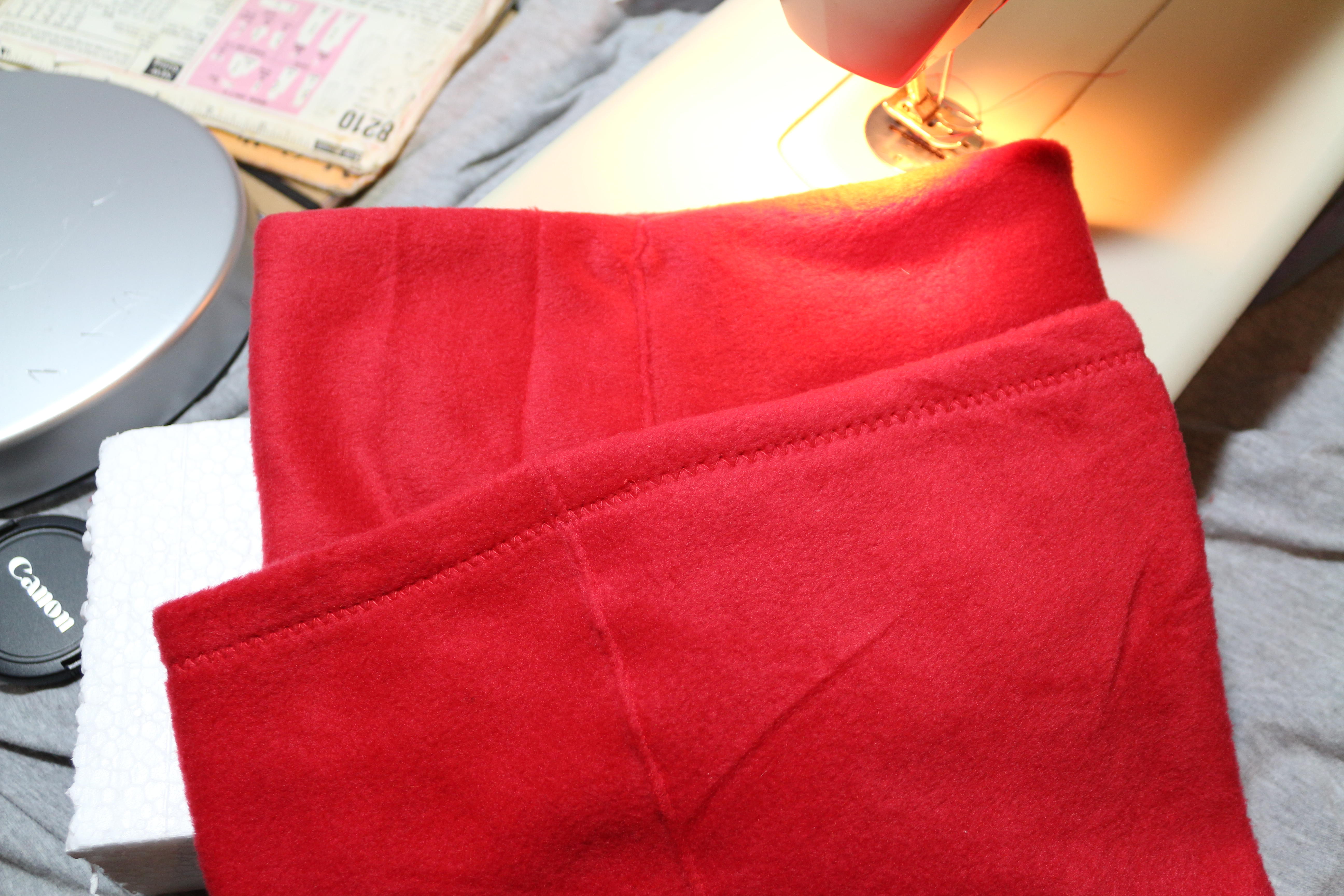 So, this time around I decided to make myself one! I bought half a metre of some nice red fleecey fabric and set to work!