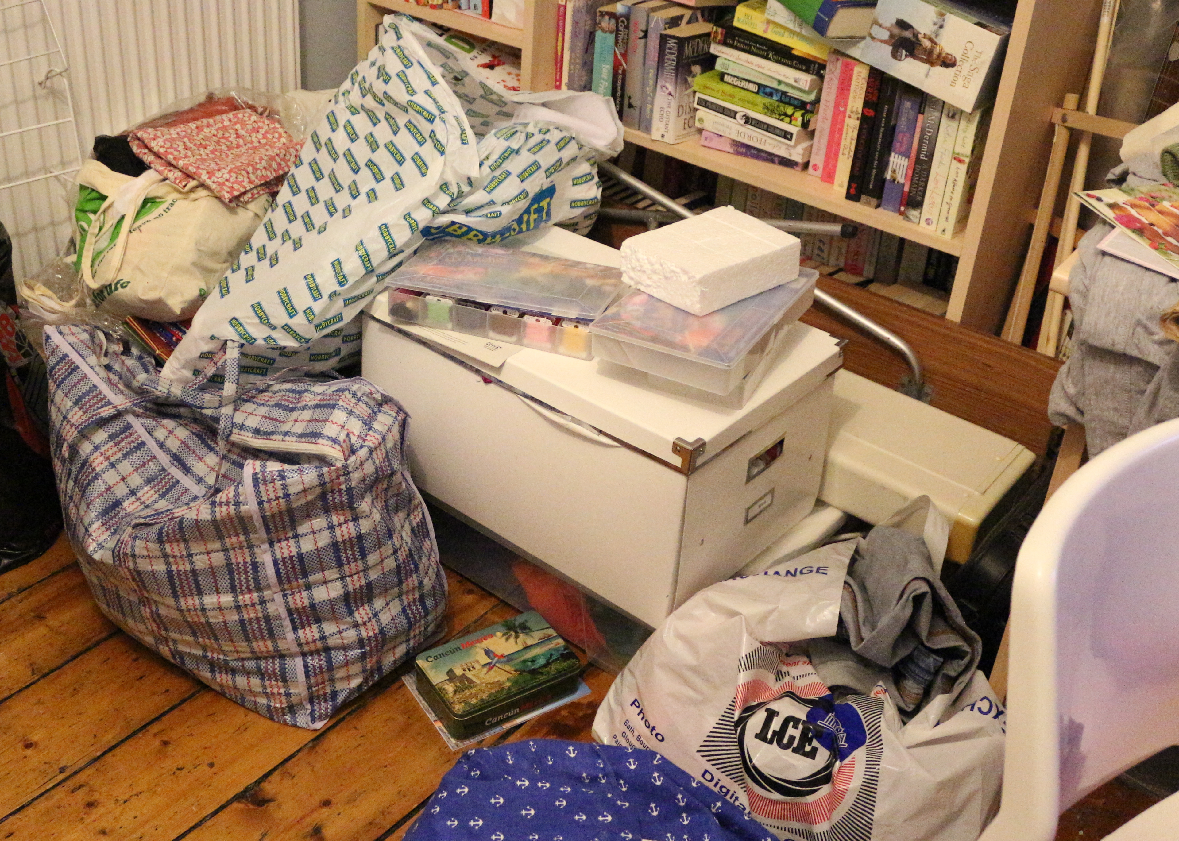 I generally craft in my spare room. I’m lucky to have it, but it’s generally full of piles of stuff everywhere…. like so: