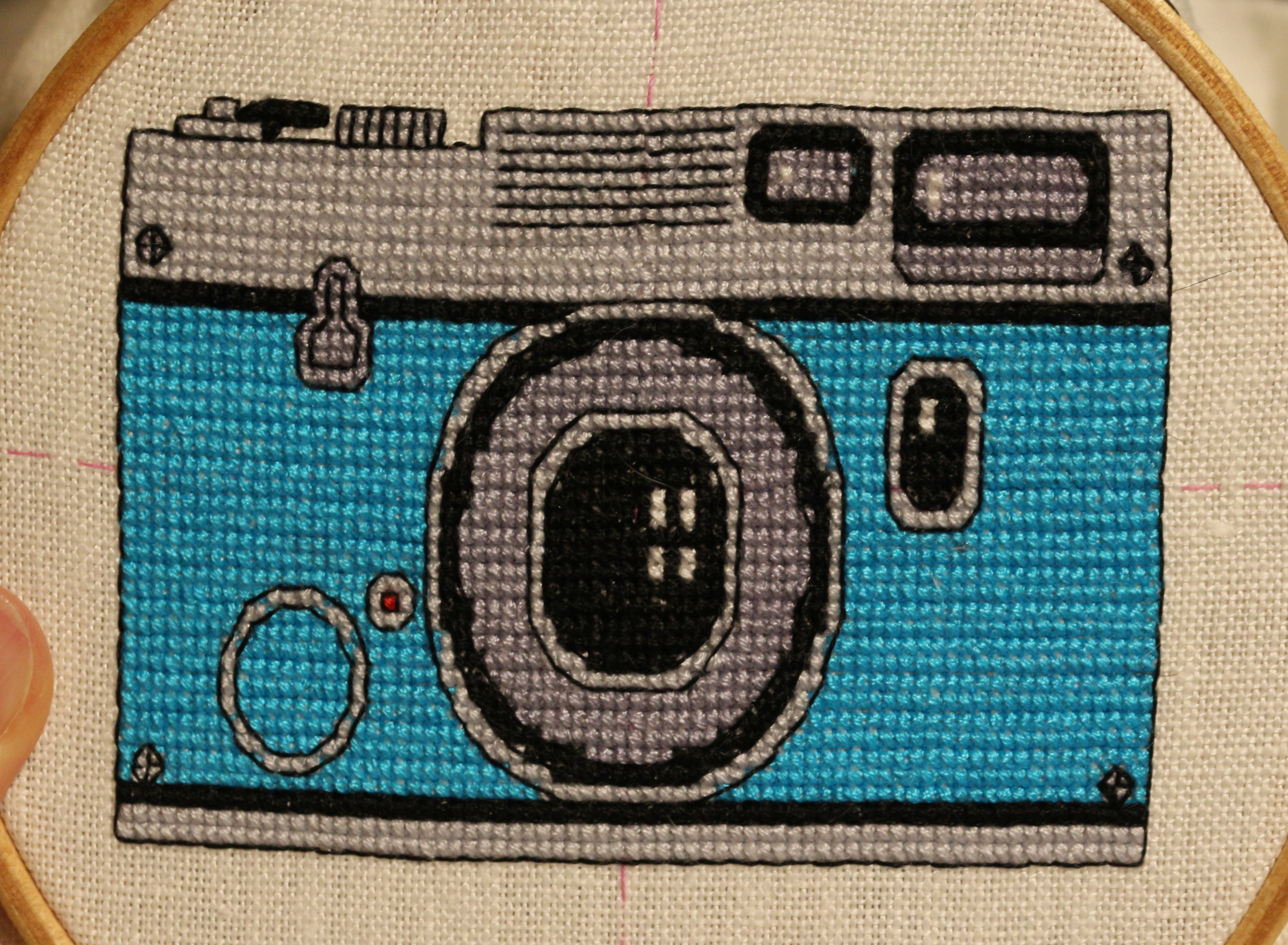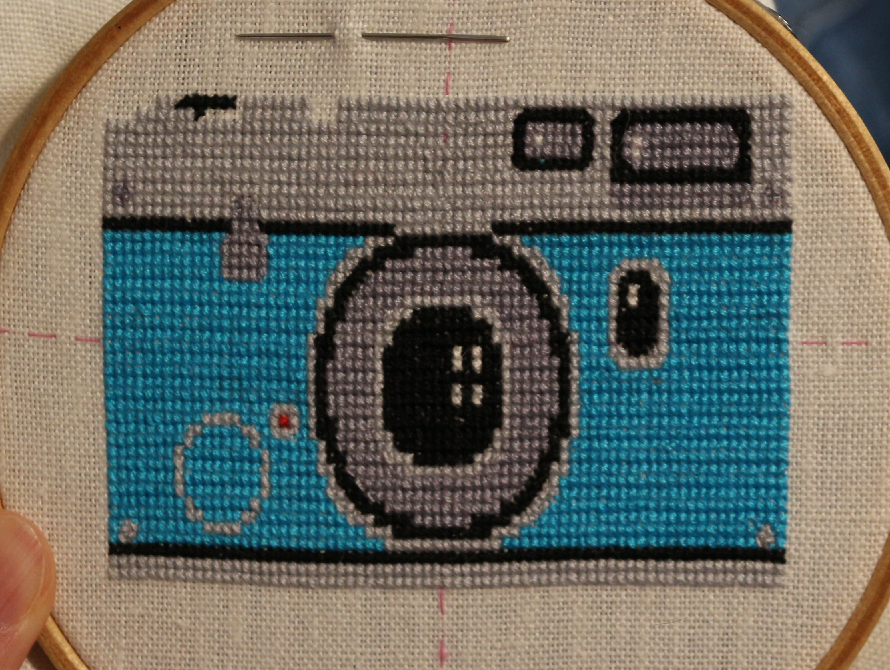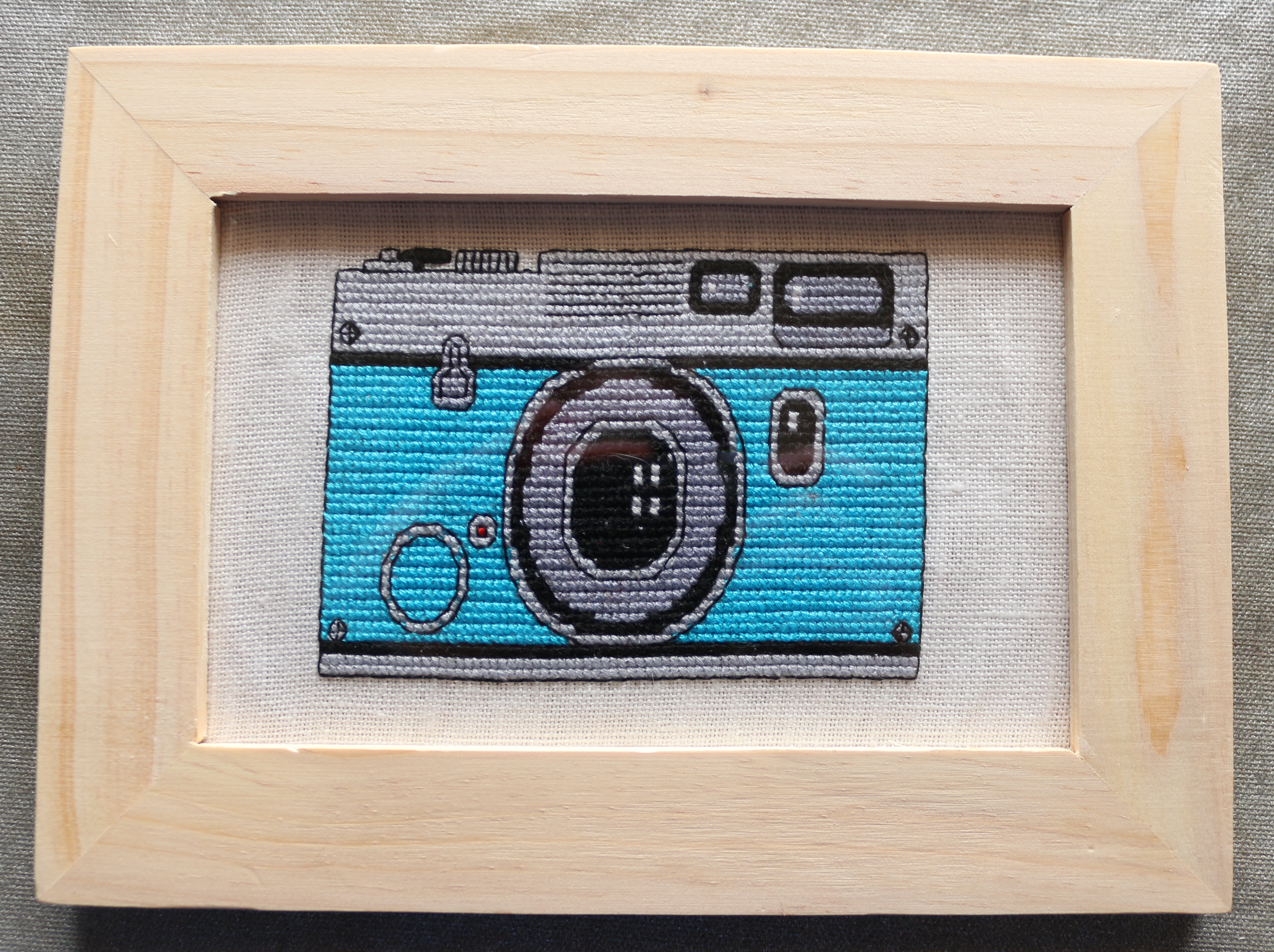 I loved the colour of the camera in the original pattern, so decided to do it exactly as is. Although making it into a camera pouch isn’t much good for my 650D, so I decided to just stitch it and frame it.
