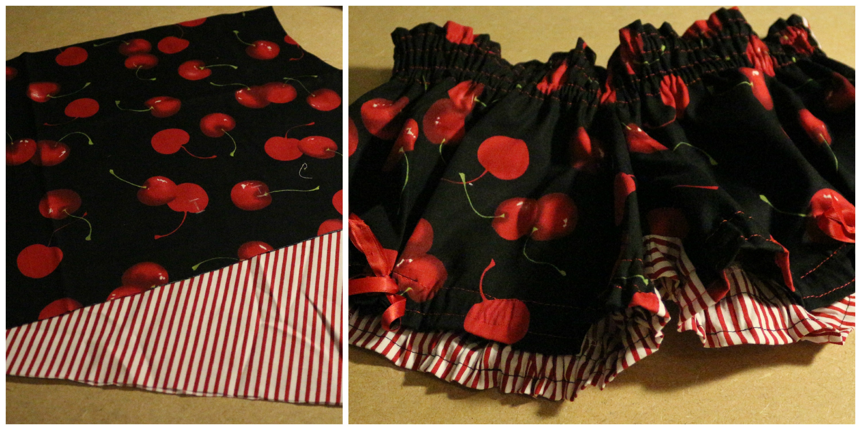 But, I didn’t have enough cherry print for front and back, so did the stripy print for the back (both fabrics were leftover from my apron making kit)