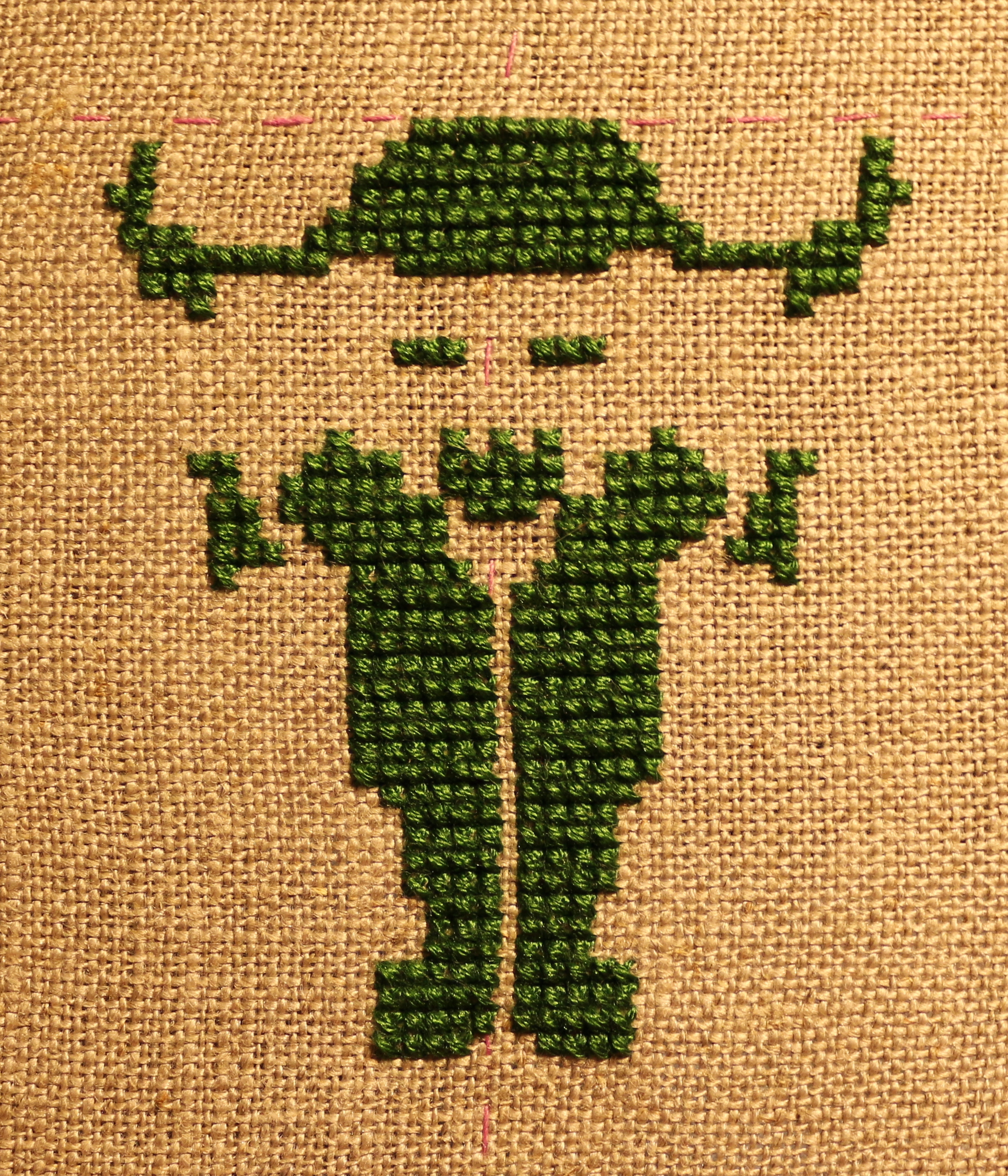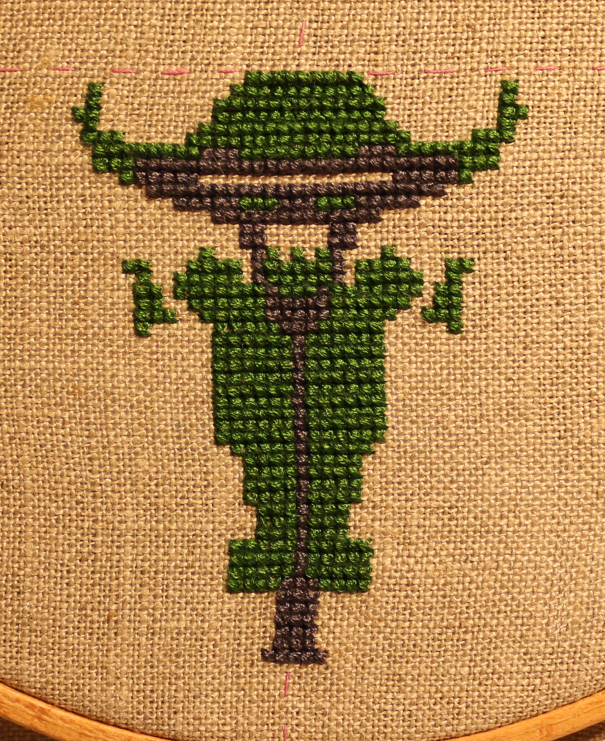 …anyhow…. I cracked on, stitching in various shades of blue, green, and grey, until….: