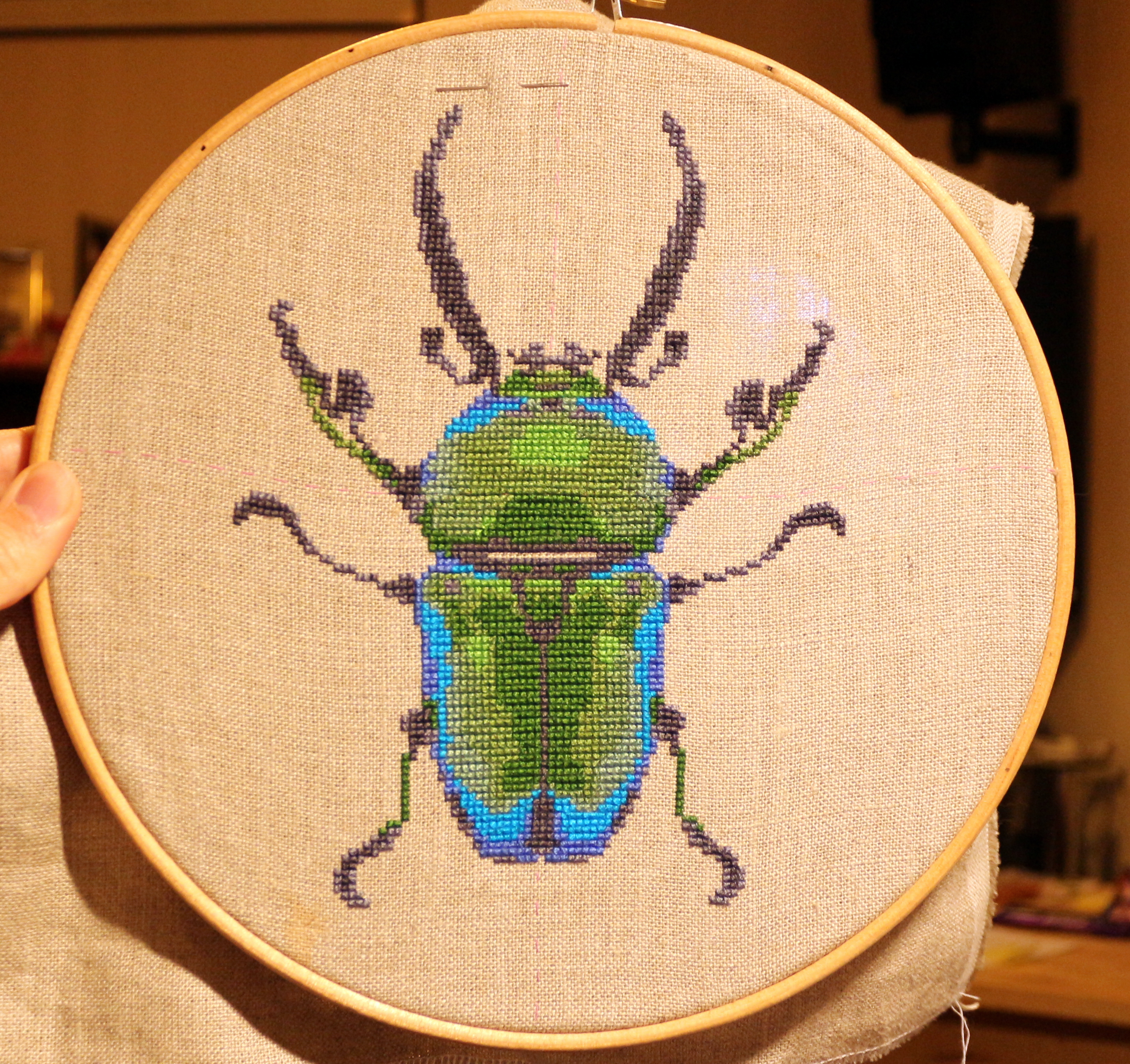 Another Cross Stitched project complete! This, again, came from issue 256 of CrossStitcher Magazine, submitted and designed by Genevieve Brading of Floss and Mischief (I also love this Snout-esque Beetle available online).