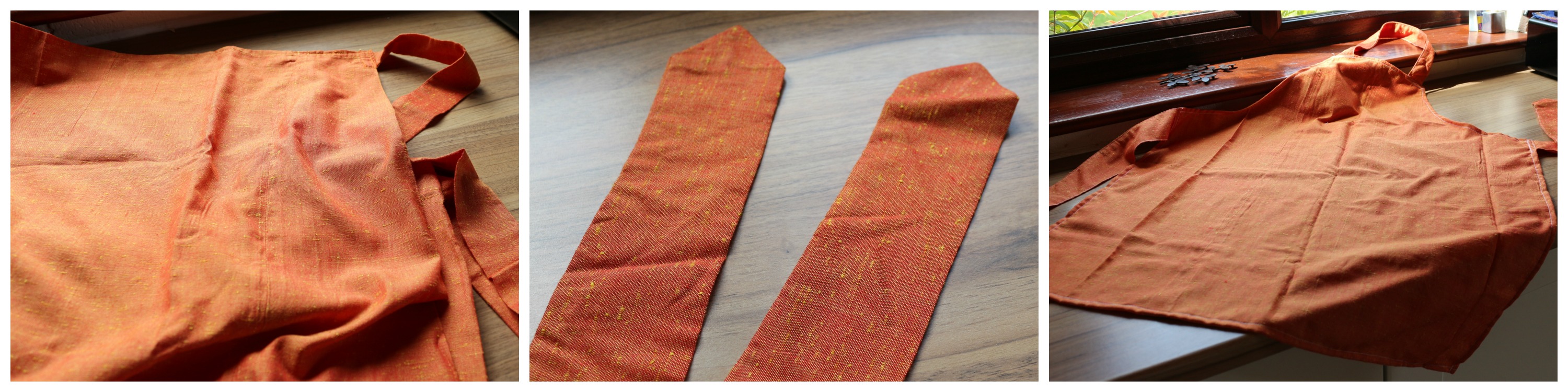 My main reason for taking Bernie was that Z had asked me if I could use an old skirt that she loved the fabric of, but had never really worn to make her an apron. I did. It’s the fanciest apron in all the land as it’s a two tone orange and yellow silk!
