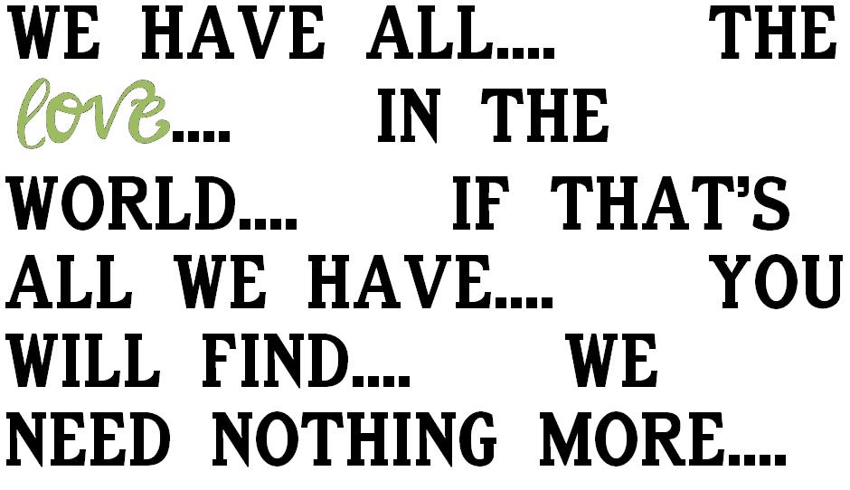 “we have all…… the love……… in the world….. if that’s all we have…… you will find….. we need nothing more”