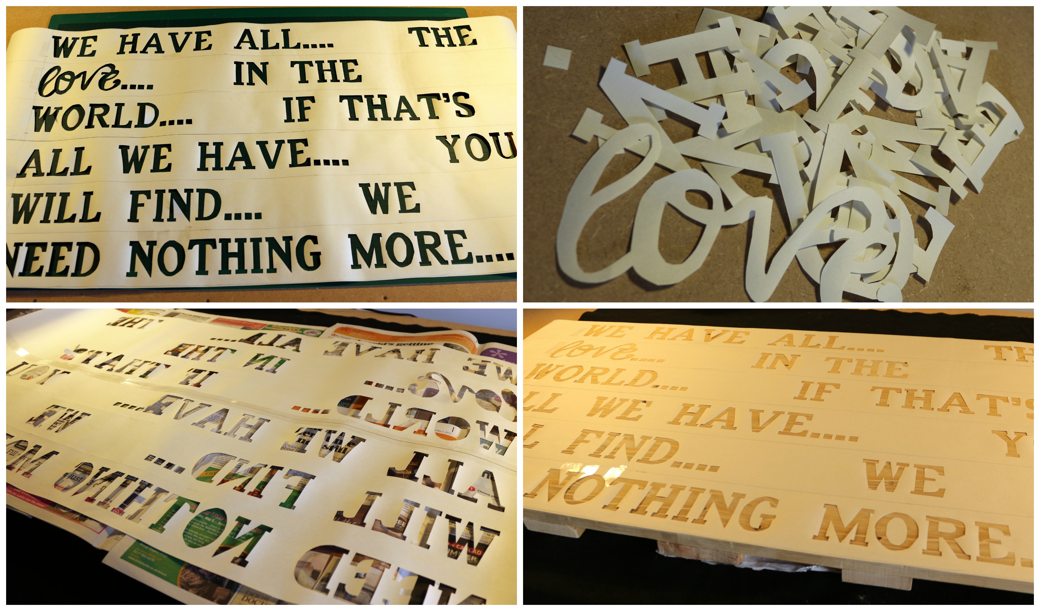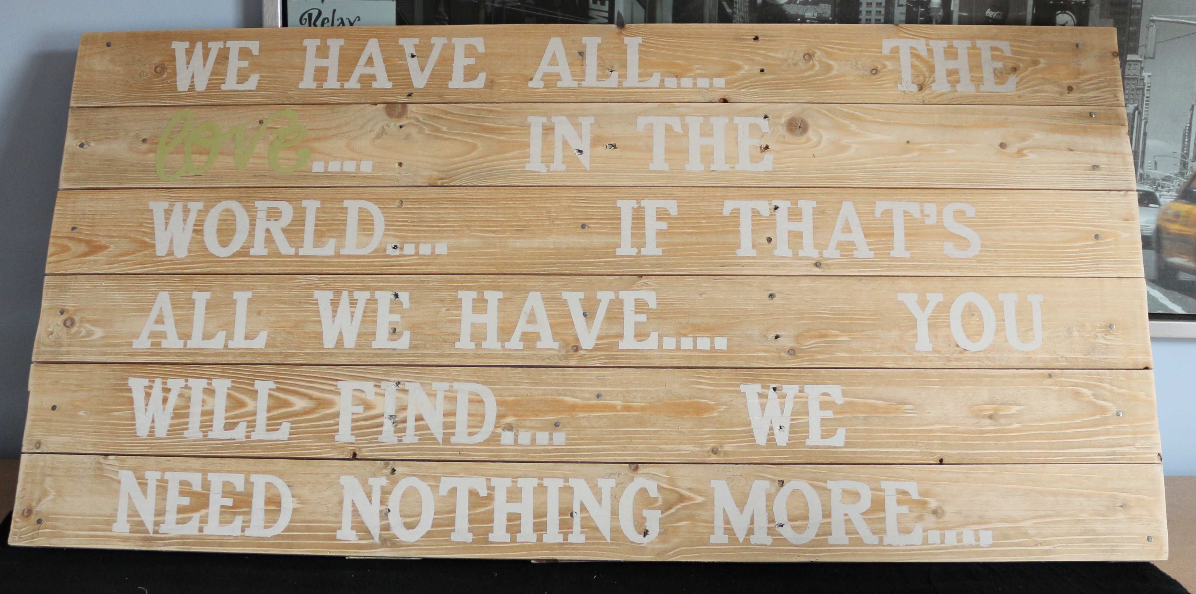 Our first dance song at our wedding was Louis Armstrong’s “We have all the time in the World”, so I decided that I wanted to put on some of the lyrics from that on to the sign.