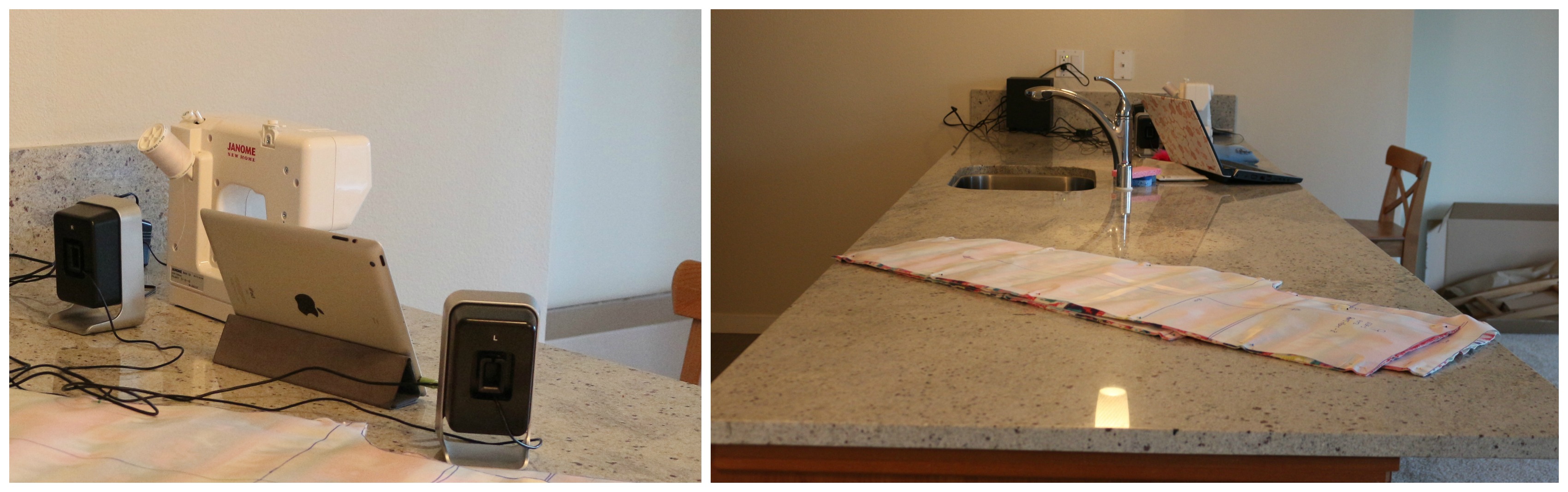 I actually got a new sewing table for my craft room, but currently we only have one single barstool to sit on (we actually got two, but one of them has a fault and requires a bit of drilling to be able to put it together – #IKEAfail), so I must sit here instead. But look how big the surface is! Loads o’ space for laying out patterns and cutting! This will change once it gets cluttered up with appliances!
