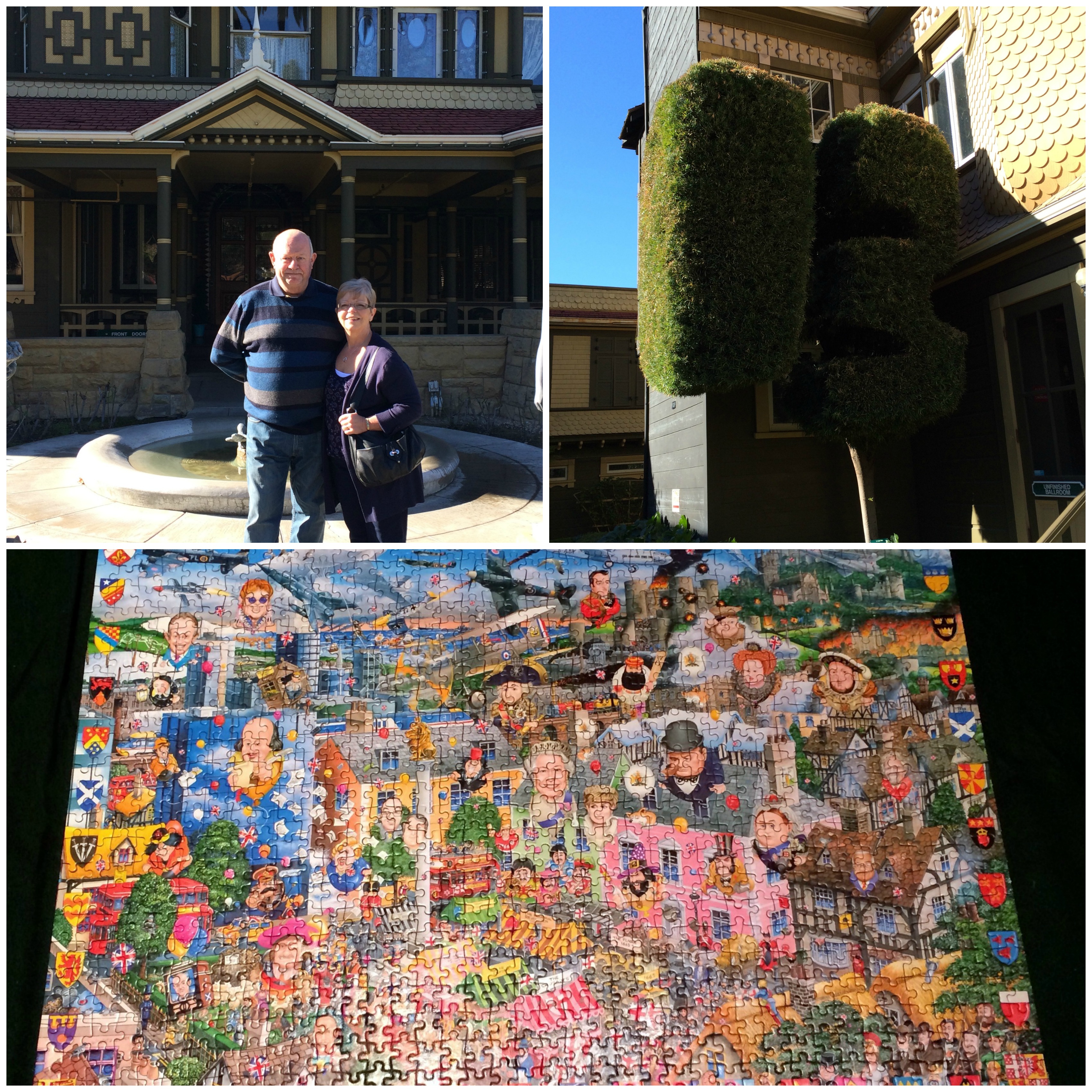 Anyhow, my Mum and her husband Jim are here to visit, and we have been to the Winchester Mystery House, the Mountain View Farmer’s Market, and…… of course, completed a jigsaw. A very British one.