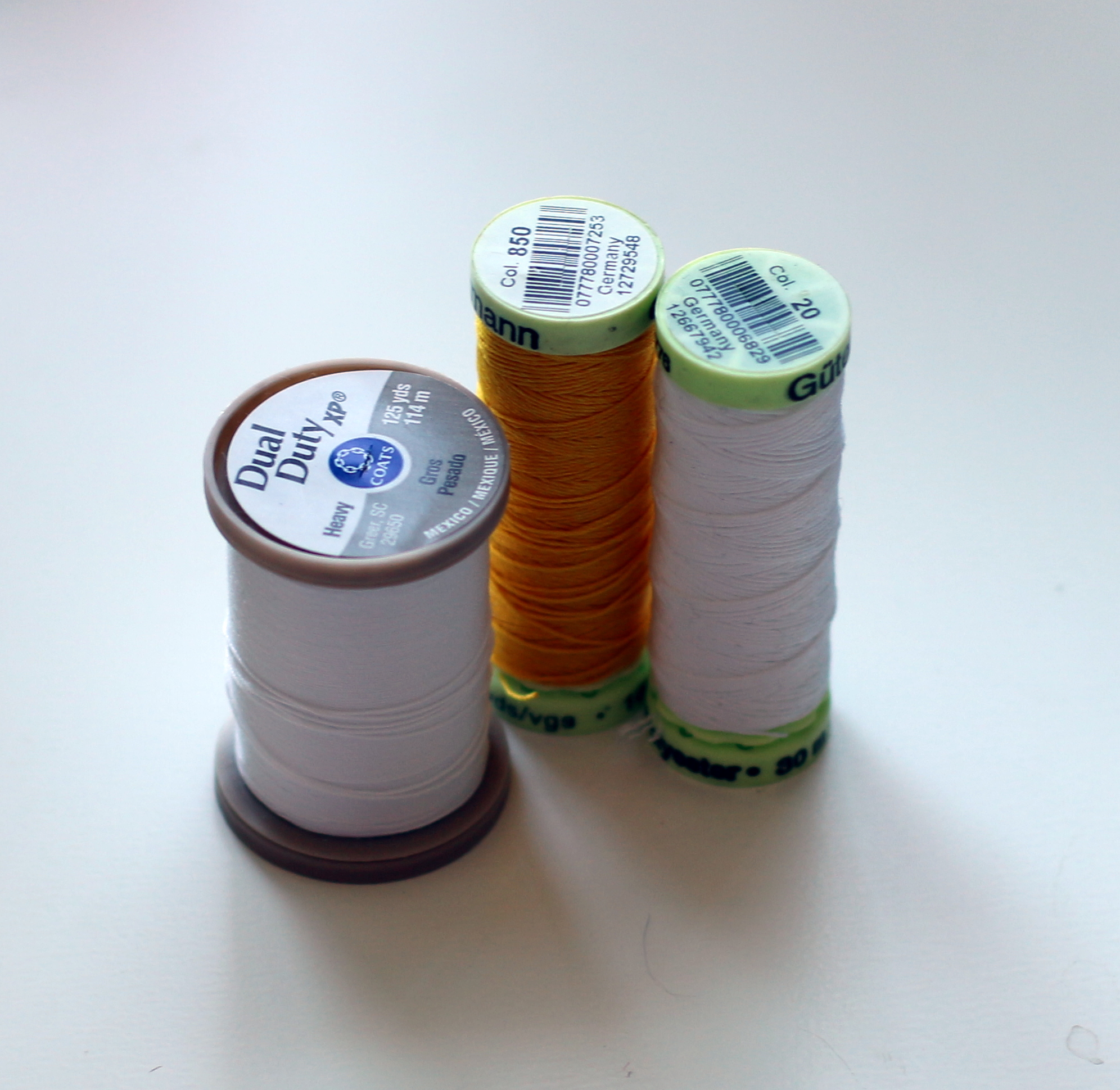 I cut a size 12, and used heavy duty thread for the majority of the seaming, with white and yellow topstitching thread for the details.