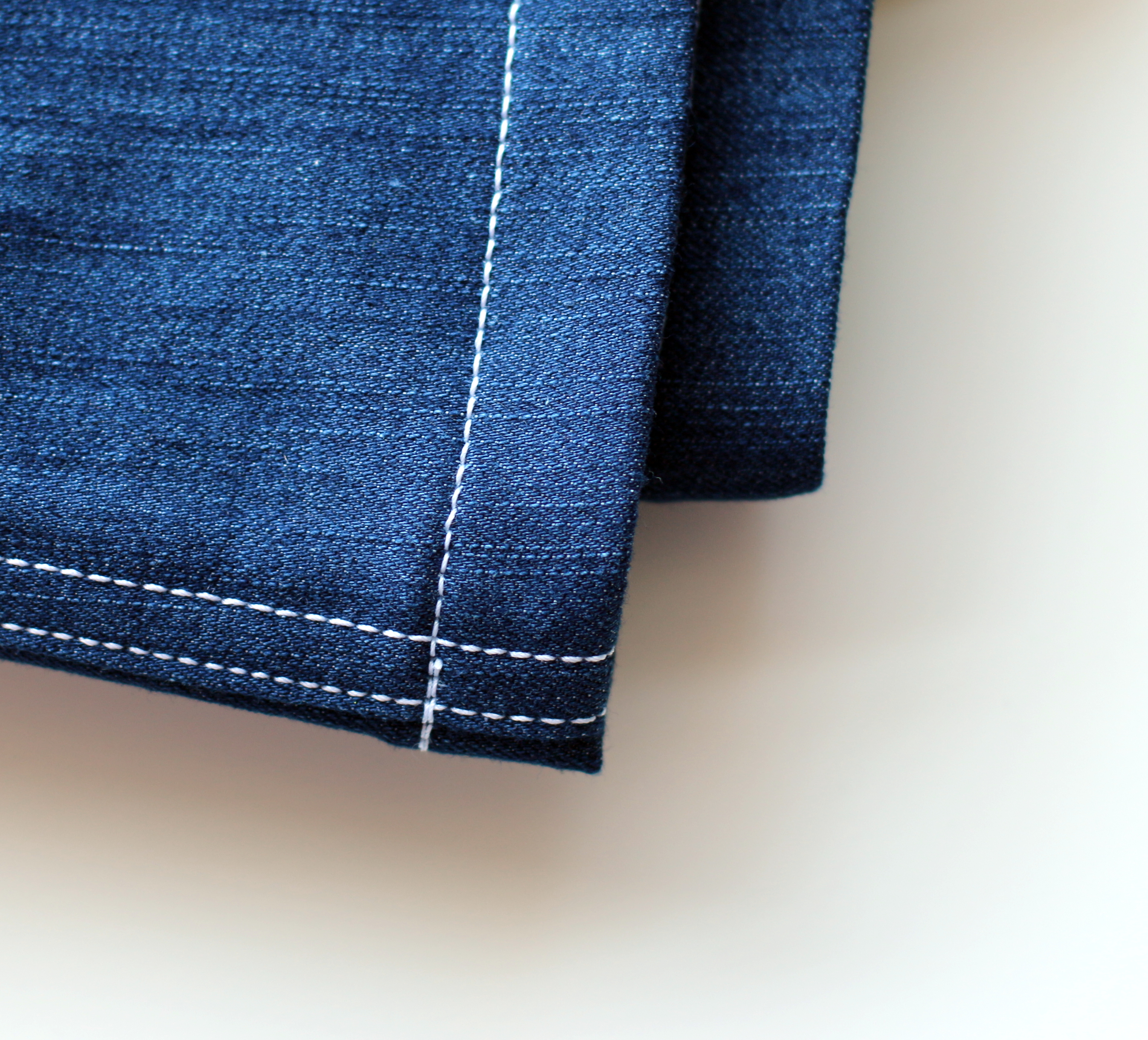 The jeans I put together as a straight 12, but shortened them by 3 inches at the lengthen/shorten lines, then chopped another 4 inches or so off the bottom, as I have short short legs! The hem is just as directed in the instructions, folded up by 1 1/2 inches, then 3/4 inch turned back in: