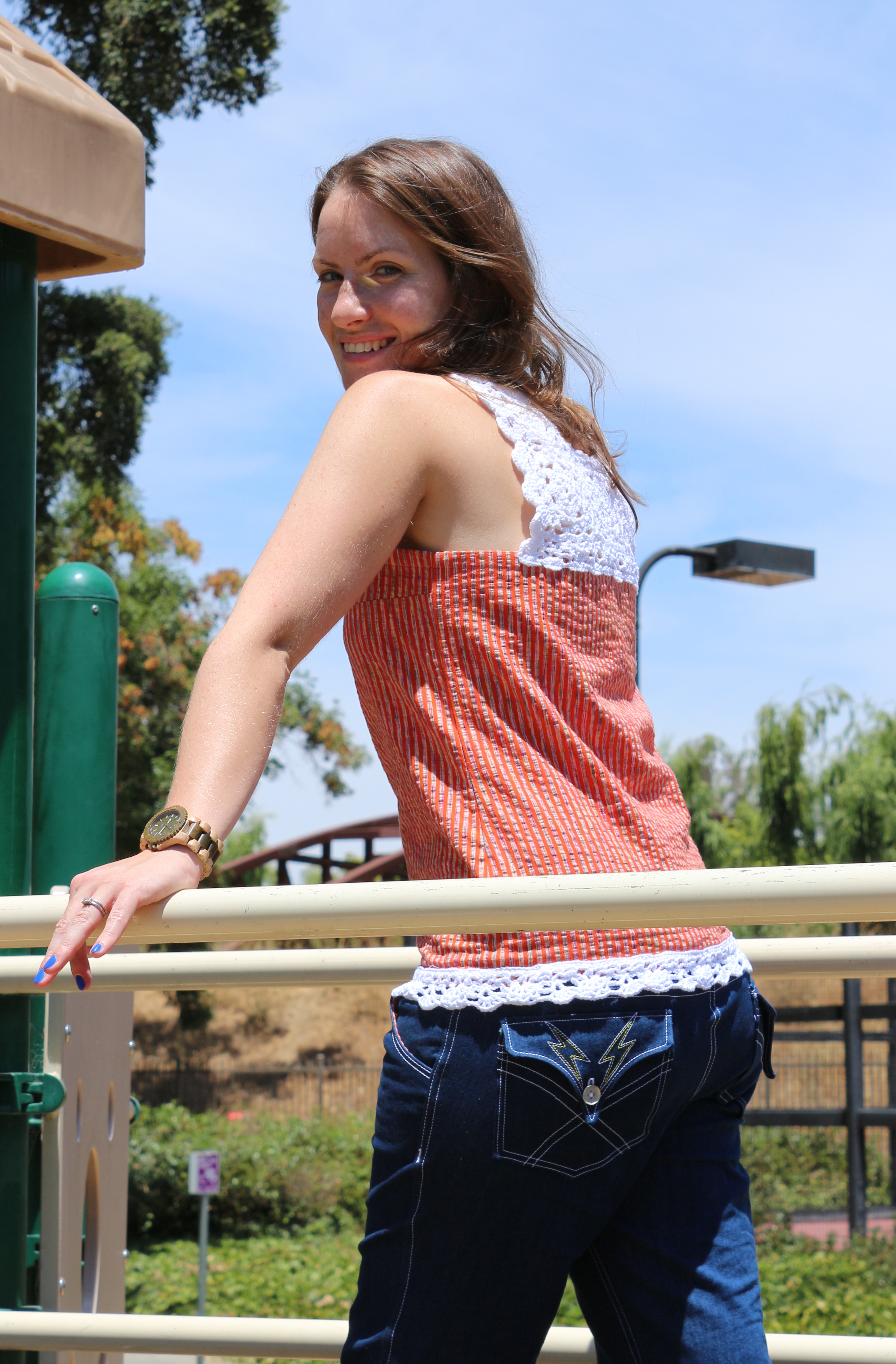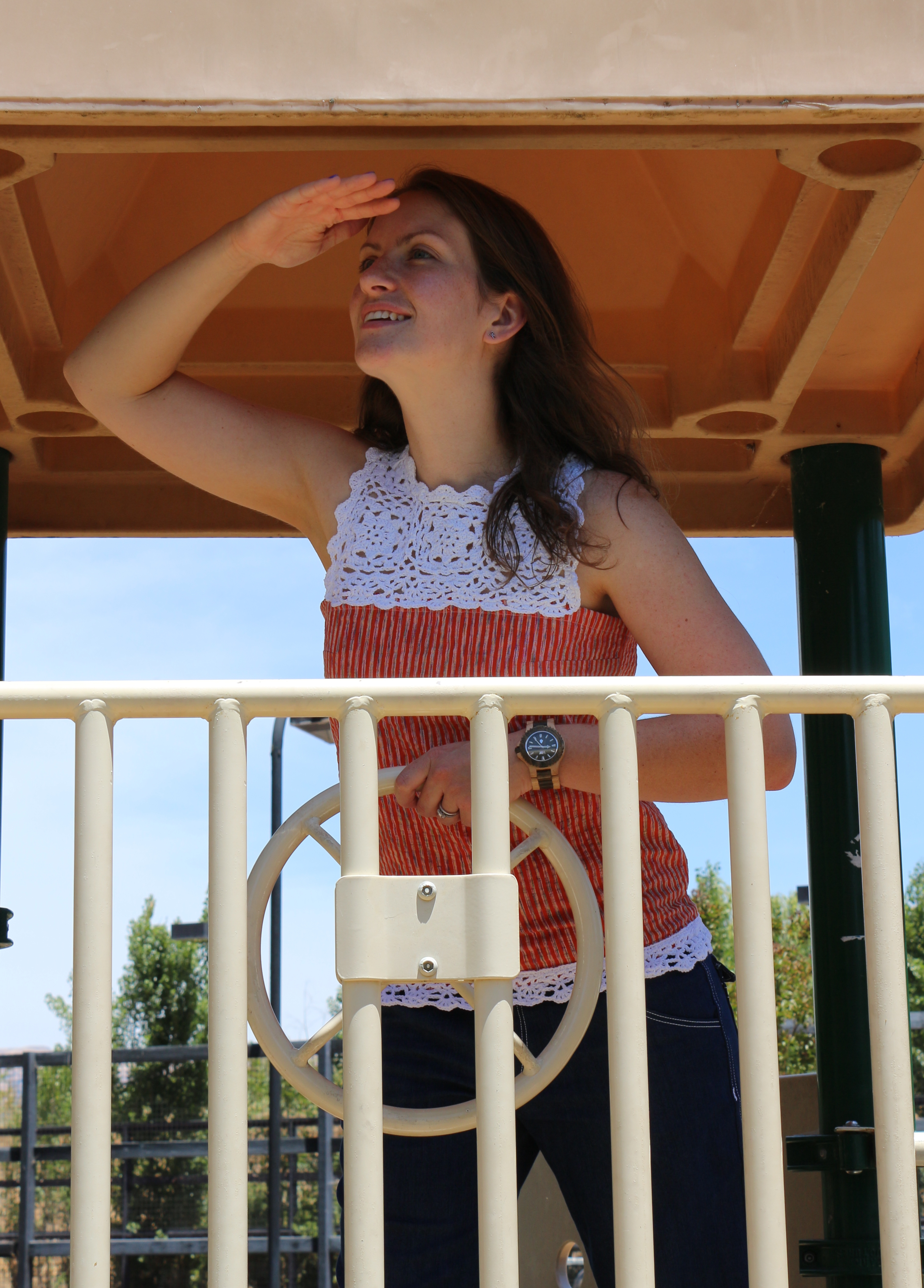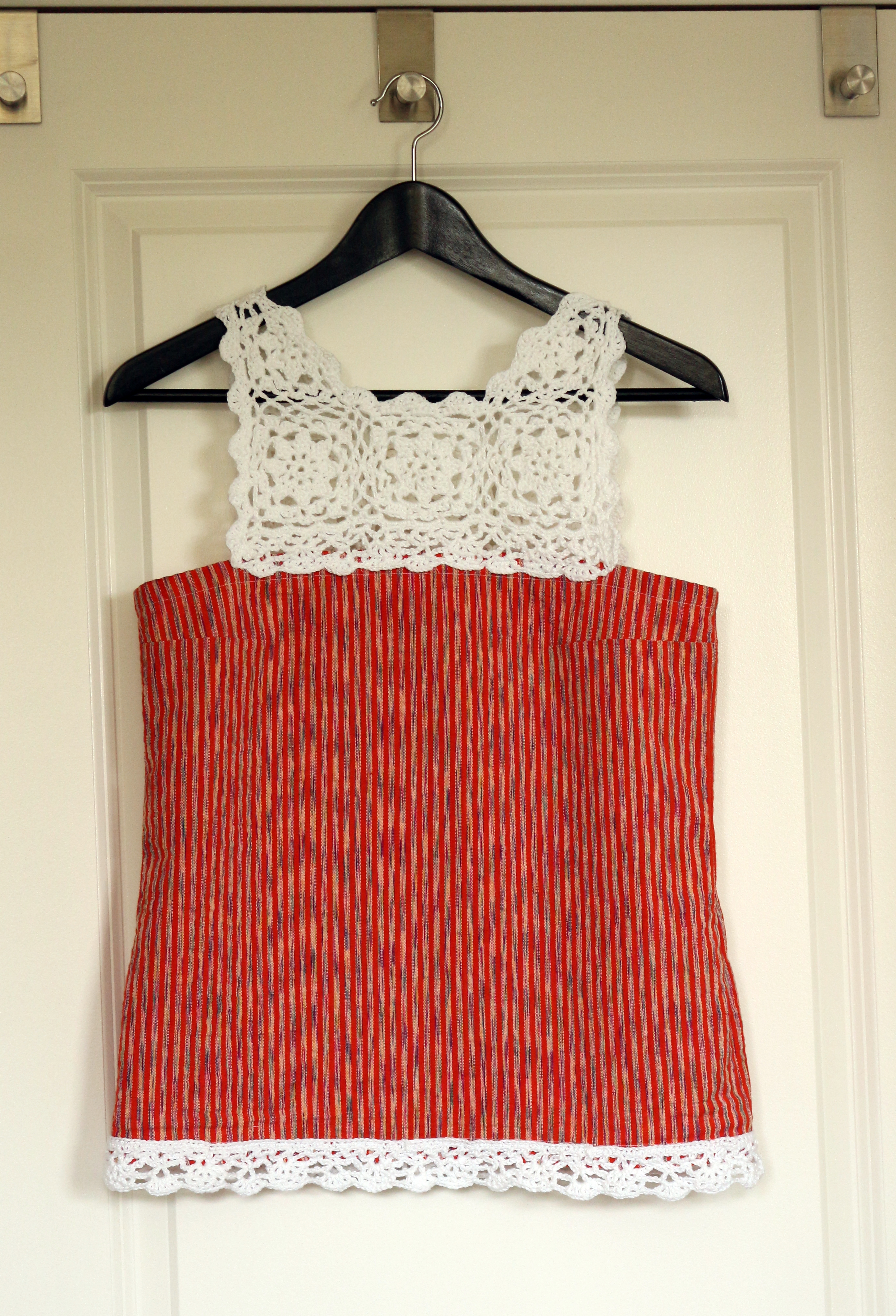 I have been doing quite a bit of crochet lately, and had the idea that I wanted to make a crochet yoke for a top, ready for summertime relaxing! This was a couple of months ago, turns out that as a novice crochet-er I didn’t really know where to start in order to design it. But then I found a freebie pattern on Ravelry. Sorted.