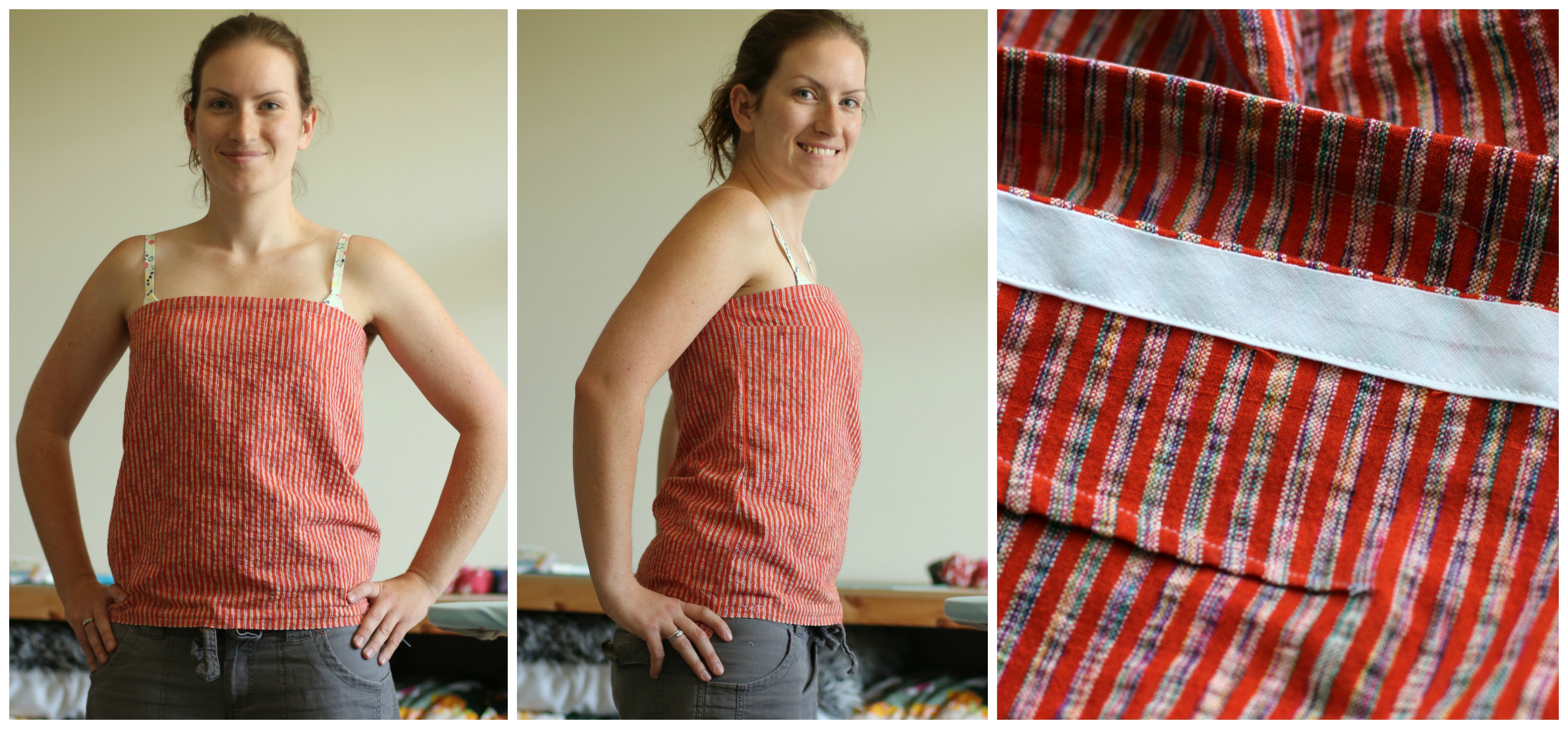 The instructions in the pattern just say to cut two pieces of fabric, chest measurement plus 5-10cm by length you want plus seam allowance, sew them together at the sides, then use elastic to pull together the top at the yoke….. Tried it. It just wasn’t a glamorous look. This may have been due to the fabric I used, which didn’t really have a lot of drape, so the shape just looked a bit bleh.