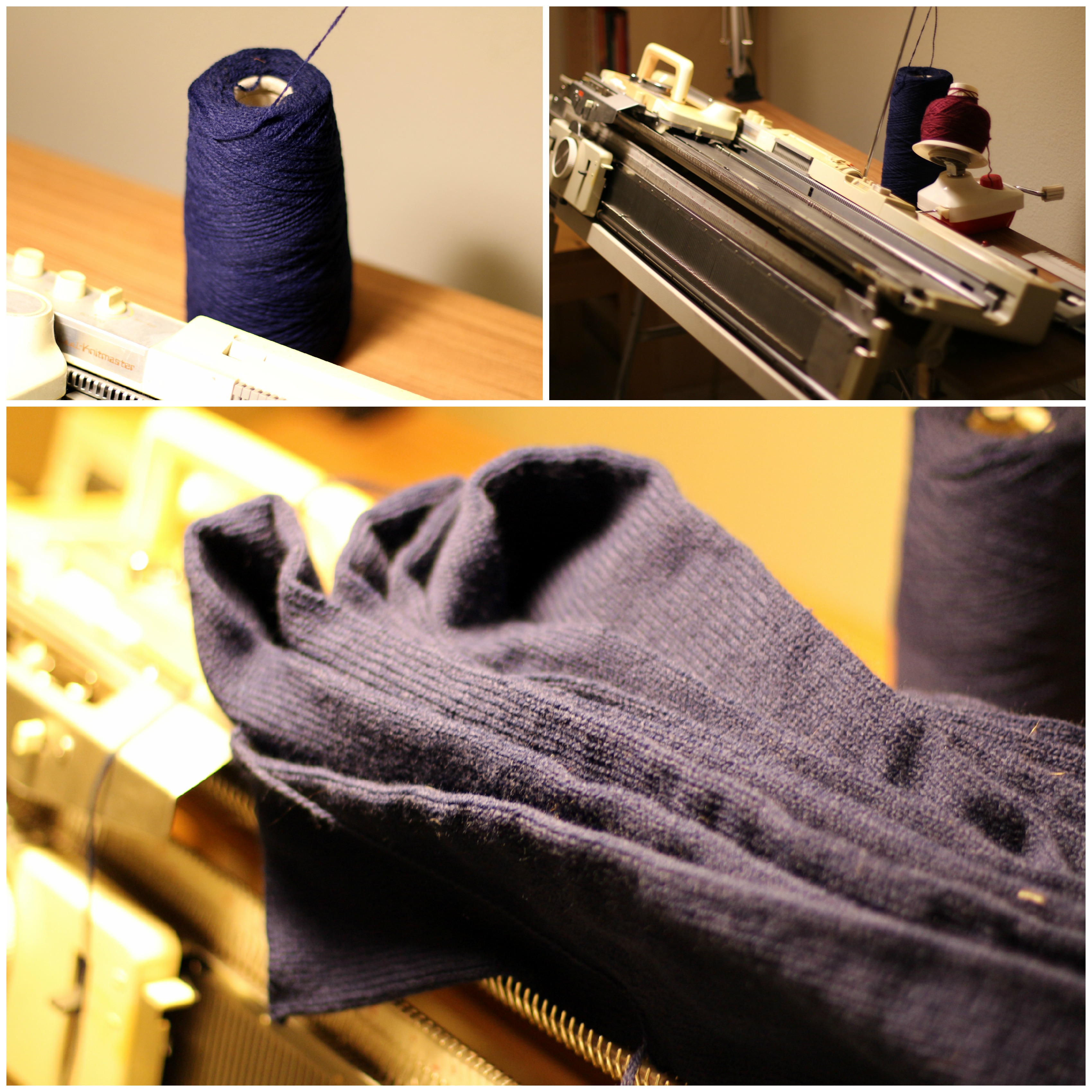 Although I guess you could say the process had started, or set in motion way back in March last year, when Andrew’s parents came to visit, and brought us the ribber attachment for the knitting machine. Which had of course stayed wrapped up and unused until a couple of weeks after the above, when I decided to get it out and set it up, as a ribber is the ideal tool to help you knit an enormously long tube of knitting!