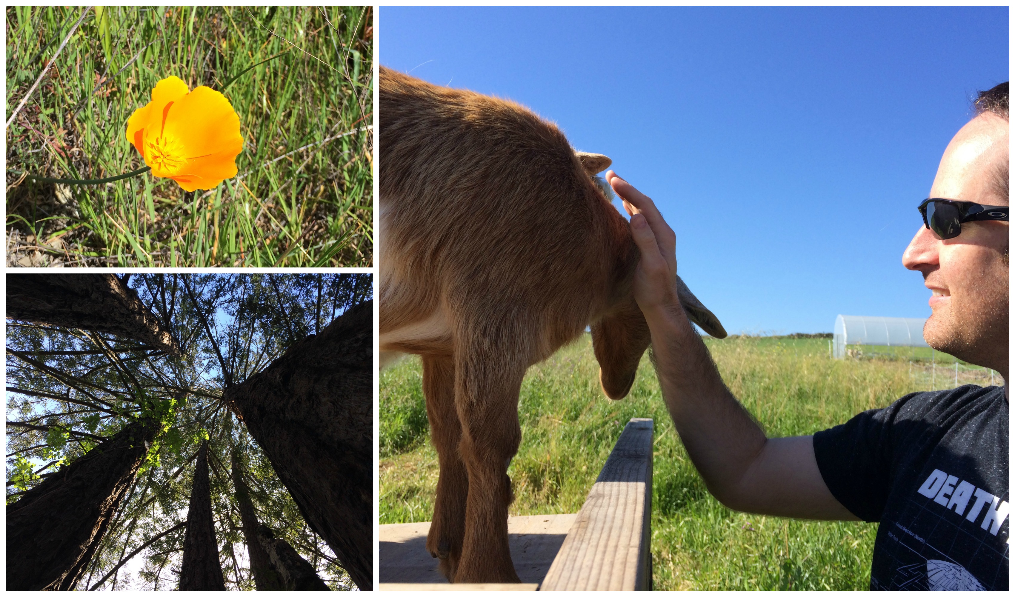 We took them out on a hike at Mount Madonna at the weekend and wound up with over 20,000 steps, and the equivalent of climbing 147 floors to our day…… No wonder my feet were sore! A pretty view though, and then a trip to a friend’s farm to see their new goats: