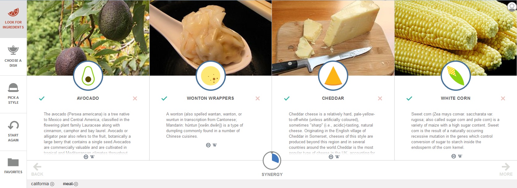 The synergy icon below the ingredients represents how well your ingredients go together….. We switched the original fourth ingredient (chickpeas) for cheddar cheese in order to get so slightly less crazy ideas, the looking through the selection, we plumped for a recipe Watson called “California Avocado Fried”, based on this recipe from Bon Appetit.