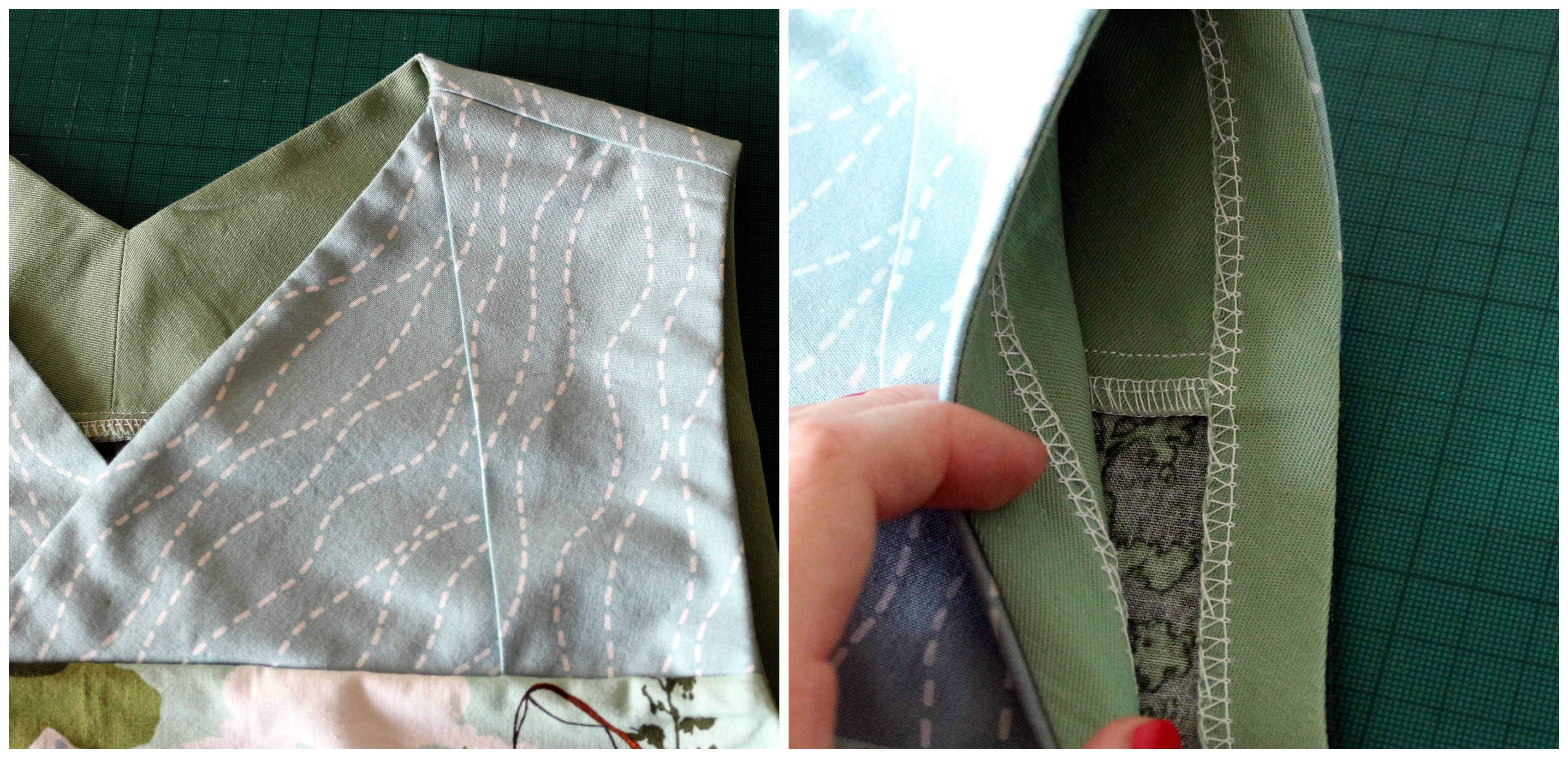 The directional detail on the yoke fabric helps accentuate the “origami-inspired yoke”, and again I finished the armholes using a strip of bias cut fabric, finished using the overlocker, then stitched down by hand. Yep, I need to work on my handstitching!