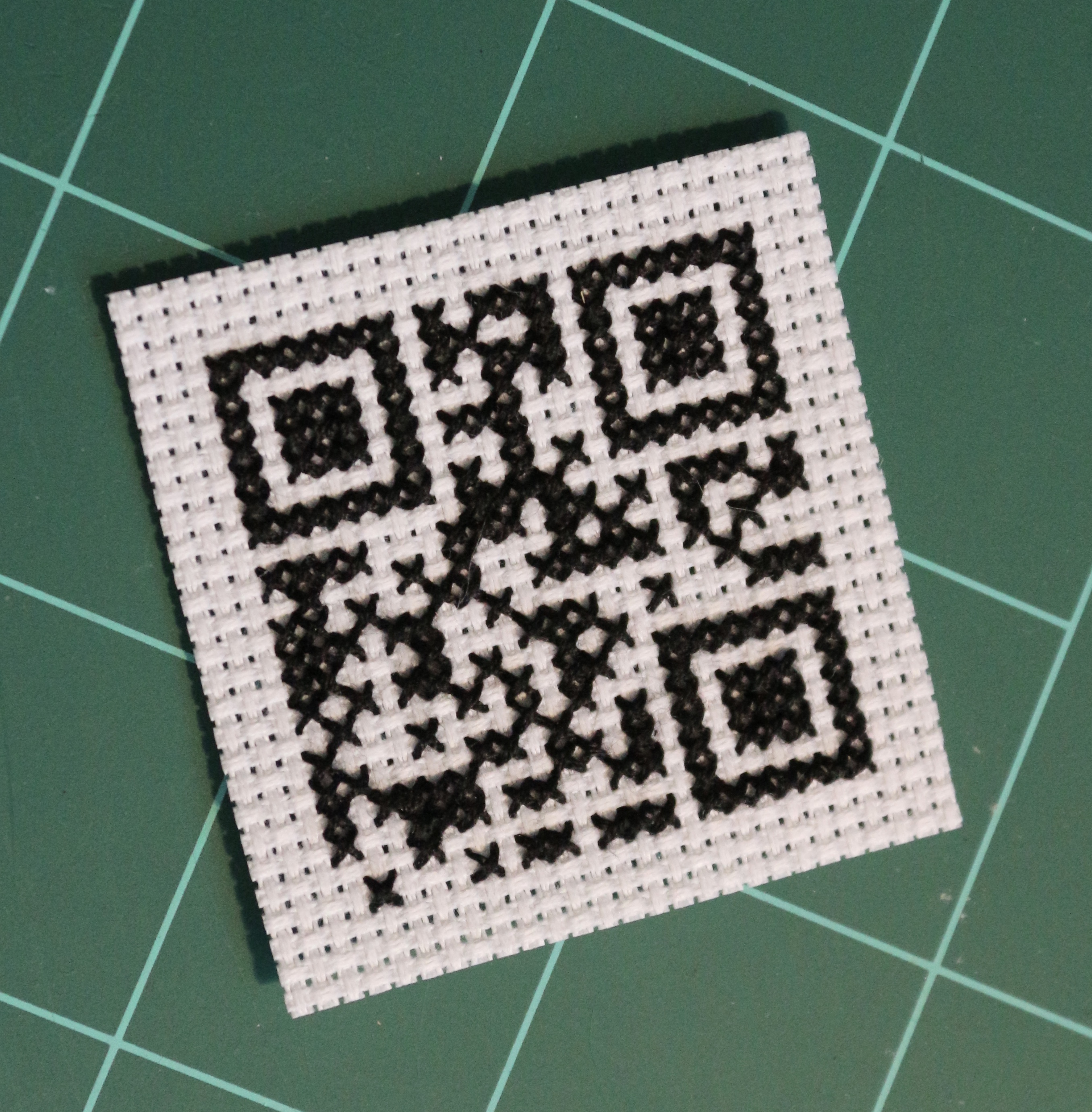 He has previously stitched a storm trooper, and some other Star Wars characters, and I have stitched him a caffeine molecule so I wondered about stitching something else kinda tech-y for him. I had seen a random QR code on something (does anyone actually use those things?) and it inspired to use one to encode a little message 🙂