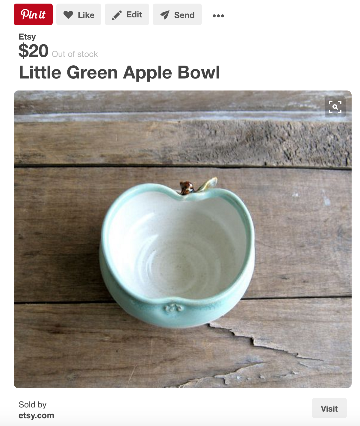 The basic bowl was thrown on the wheel, then altered into the shape of an apple by indenting it on either side and shaping the sides in between.